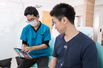 診療内容は、虫歯治療、小児歯科から訪問歯科まで、幅広い世代の方のニーズに対応できるメニューを揃えています。治療に当たっては、タブレットでレントゲン写真などを確認しながらわかりやすく説明してくれます。虫歯や歯周病の進行状況を自分で把握できるので、納得感の強い治療が可能です。