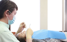 治療計画を立てる際には、CT検査を用いて患者様一人ひとりの顎の骨の状態を詳しく調べています。CTスキャナによる断層画像から多くの情報を得て、治療の精度向上に役立てているそうです。また、3D画像を作成するシミュレーションソフトを用いてリアルな治療計画が立てられ、わかりやすく説明することを可能にしています。手術中は静脈内鎮静法を併用することもあり、専任の医師が全身管理を行います。