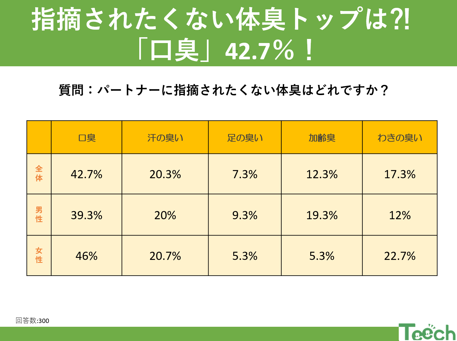 【歯科コラム】パートナーに指摘されたくない体臭は?トップは「口臭 42.7%」!