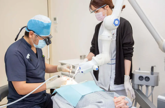 設備としては最新のマイクロスコープやCTスキャンを導入し、精密な診断と治療を実現しています。診療台はパーテーションで区切られ、長時間の治療や手術には完全個室を用意しています。カウンセリングルームでは、落ち着いた雰囲気の中で詳細な治療説明を受けられます。院内感染防止にも力を入れており、滅菌専用コーナーを設置し、徹底した衛生管理を行っています。