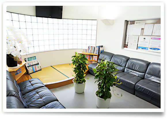 待合室は落ち着いた雰囲気で、奥にはお子様が遊べるプレイルームやリラックスできるマッサージチェアを完備しています。また、エピオスエコシステムを導入しており、殺菌水を生成することで院内感染の予防にも効果を発揮しています。