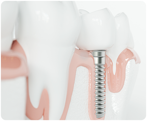 インプラントは、歯を支える歯槽骨にインプラント体を埋入し、アバットメントを取り付けて人工歯を被せます。